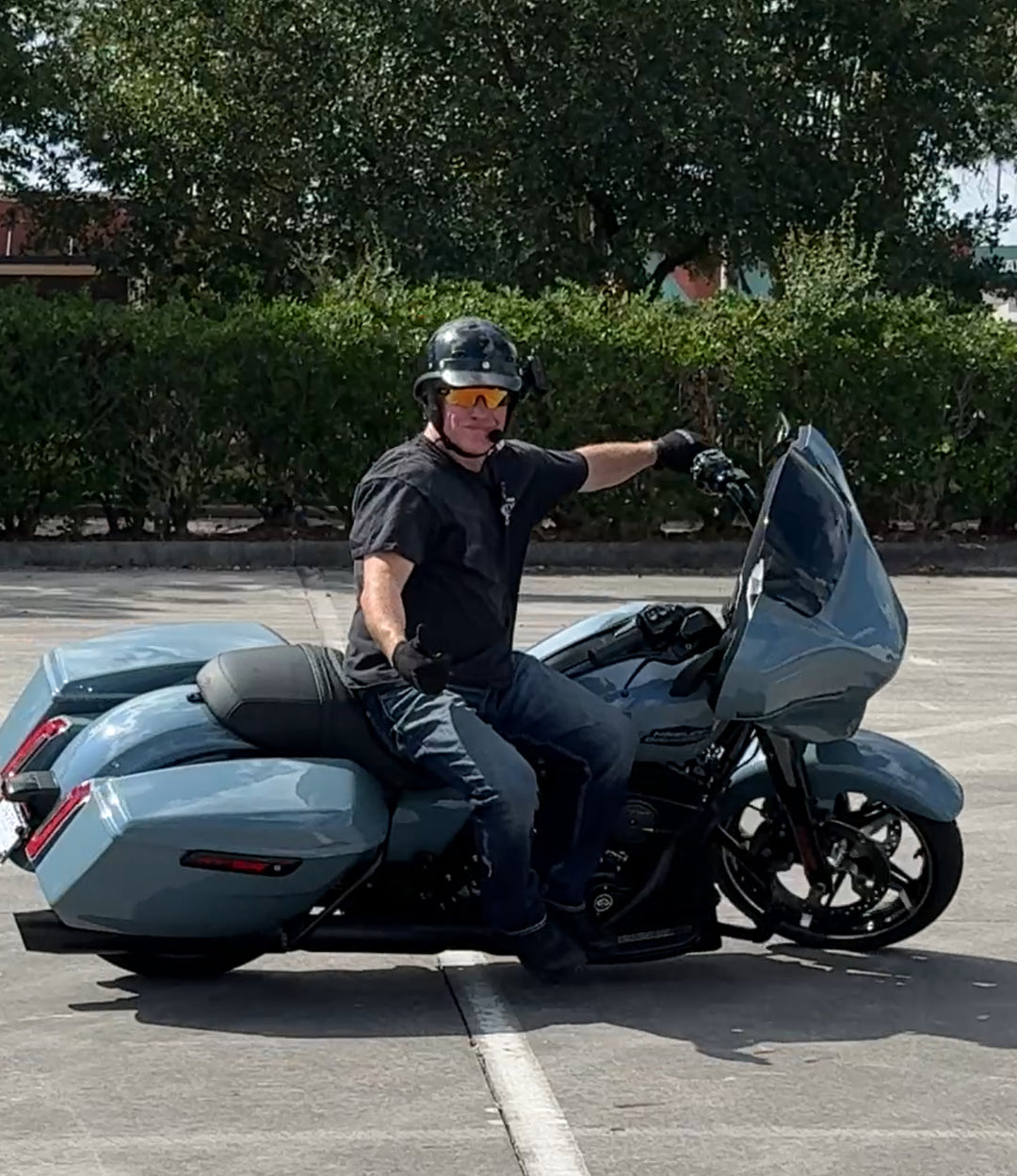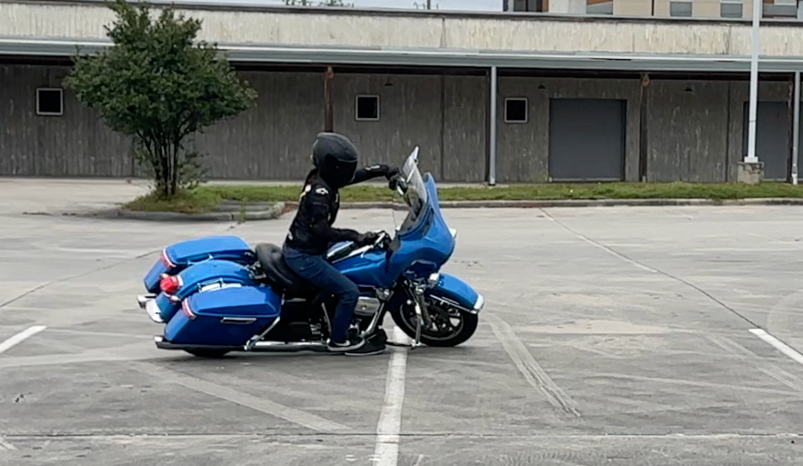She weighs 100lbs, is a brand new rider, and has less than 20 hours of riding experience on a Harley Electra Glide